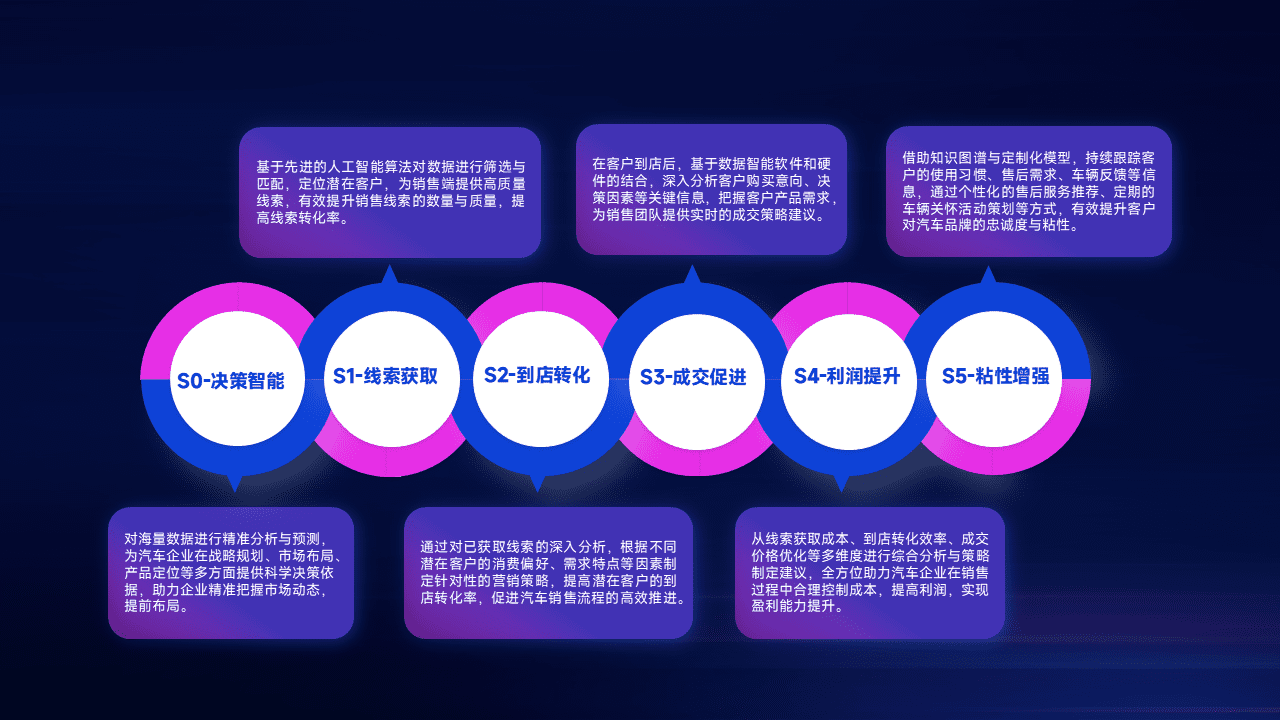 通过拓宽潜在客户来源、、、优化线索分配并提高到店转化率,,以增强销售效率。。。同时,,,利用线索数据不断优化分析模型,,,有效提升转化率,,,,扩大营销影响力。。。。
